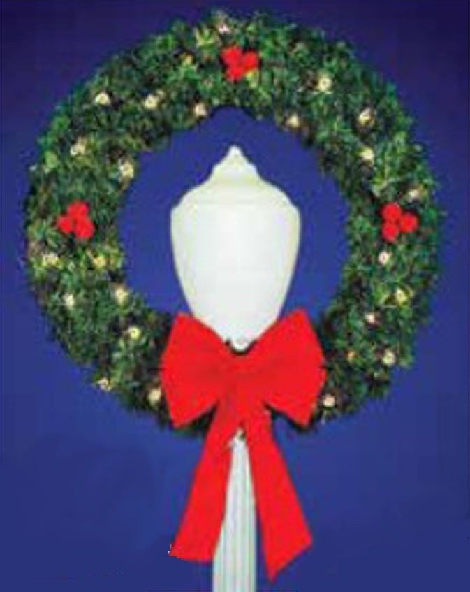 "HAVE IT YOUR WAY" Let Manneco build your wreath the way you want it. Choose from several available sizes as well as your choice of garlands, lighting, ornamentation and bows. Pole wrap is optional and sold separately. Call for more information & pricing. |